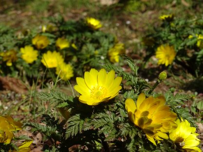 梅が大分咲き、河津桜も咲き進む本日は、福寿草を発見(*^^*)こんにちは、妖精こと春告花さん♪